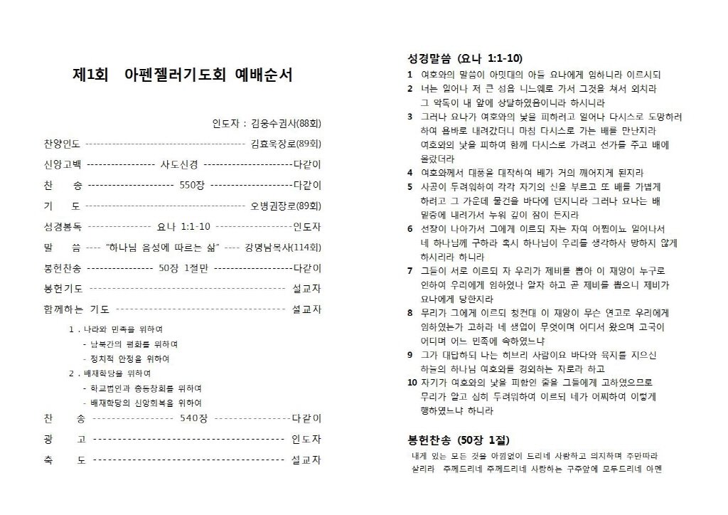 - 제 목 제1회 아펜젤러기도회 결과보고